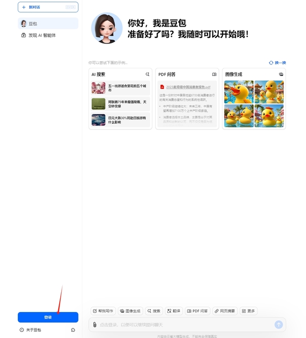 如果屏幕前的你是第一次使用豆包,且想深度体验豆包的功能,那就得创建个账号,此时可以这样做: