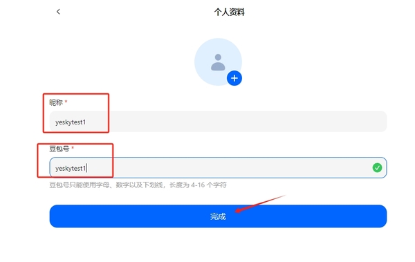 三、接下来,我们就需要创建豆包昵称和豆包号,并且换个自己喜欢的头像,都设定完成后,我们的豆包账号就注册完成了。