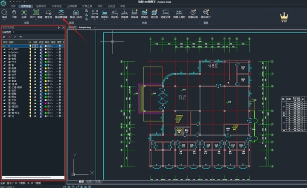 ③接着,点击【图层管理器】或是【图层工具栏】,这里建议如果你是第一次打开浩辰CAD看图王,可以先打开【图层管理器】,这样一来我们就可以看到很多显示的图层了,并可以进行针对性的管理。