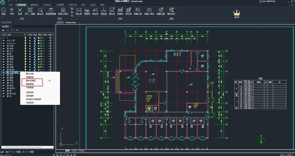 ⑤删除/新建图层。同样是右键图层,我们可以删除图层,将无用的图层删除。或者是在图层管理器空白区域右键,即可新建图层,当然图层的新建,更多还是服务于图纸的再编辑。