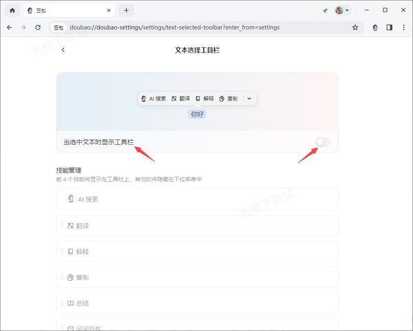 豆包文本选择工具栏禁用方法2: