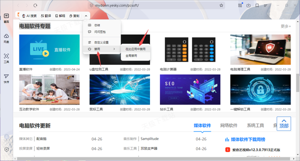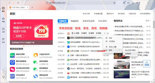 而这个文本选择工具栏还可以设置部分软件禁用的功能,如何设置呢,继续往下看吧。