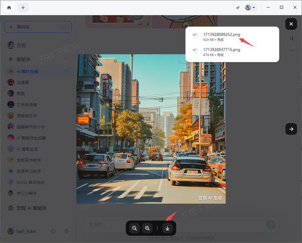 4、如果软件画出的图片大家非常喜欢的话,点击该图片下方的【下载】按钮,还可以将图片保存至电脑本地。