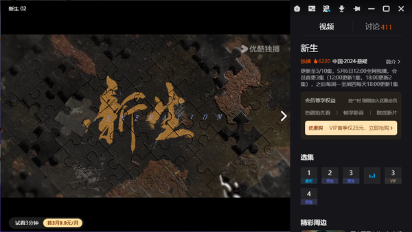 井柏然新剧新生不花钱在优酷平台可以观看下载,目前该剧已经更新至第3集,VIP用户可以观看下载至第3集,非VIP用户可以免费不付钱观看与下载至第1集。