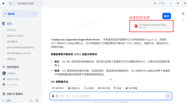 1.直接点击上传的文献,在豆包打开PDF内容。