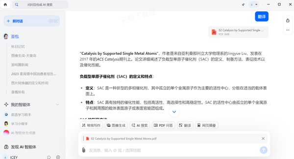 在如今科技高速发展的时代,AI技术的成熟彻底改变了人们的认知,豆包就是字节跳动开发的一款AI软件,它可以进行AI智能写作,生成各种小红书、朋友圈、日报月报文案,还可以智能生成图片、漫画,智能翻译,智能解题等等,极大地方便了人们的生活,在学术领域,豆包也可以发挥很大用处,比如翻译英文文献,下面小编就为大家介绍一下怎么用豆包翻译智能英文文献。