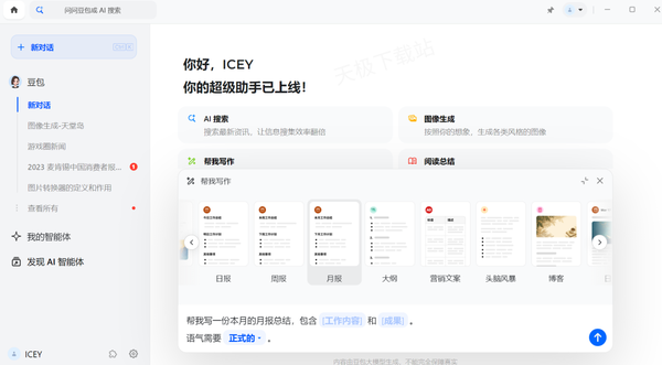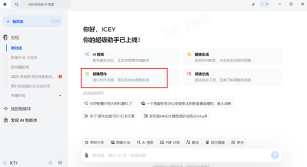 2.写作功能的丰富程度上。豆包更胜一筹,豆包的AI写作覆盖范围非常广,此外,还可以使用他人创建分享的AI写作功能,更能满足用户的多方面需求。