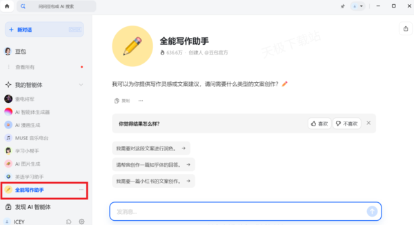 1.在首页点击“我的智能体”,选中“全能写作助手”。