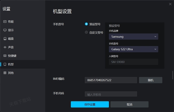 3.在机型设置中,我们将预设型号改为“Samsung”,手机型号选择最高的型号,这里我们选择“Galaxy S22 Ultra”。