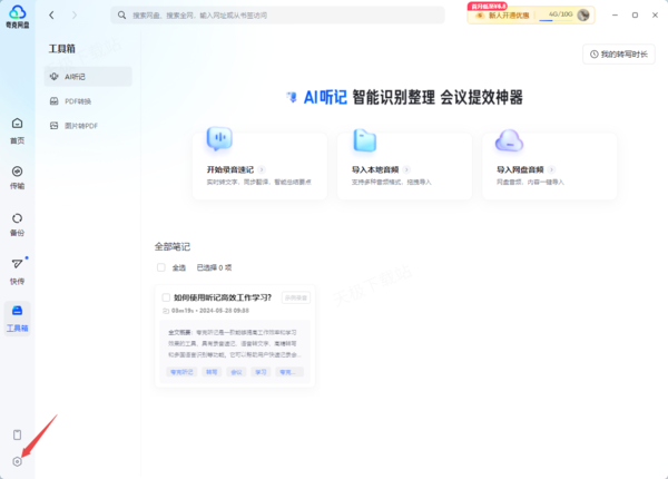1、启动电脑端的夸克网盘,点击左下角的【小齿轮】设置图标。