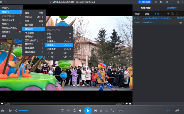第一种方法:在暴风影音打开视频,点击左上角图标,依次点击“播放”-“播放控制”-“加速/减速播放”。