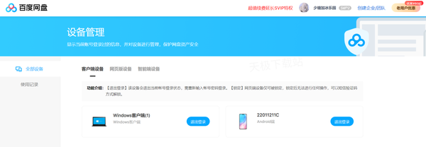 百度网盘是我们经常使用的云储存工具,因为容量大、功能丰富被很多人所喜爱,云端储存最重要的就是安全问题,经常查看百度网盘的登录信息,可以确保我们的账号的安全情况,下面小编就为大家介绍百度网盘详细设备登录记录在哪查看。