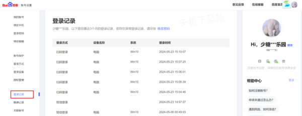 2.在打开的网页点击左下角“登录记录”可以查看近3个月所有的登录记录。