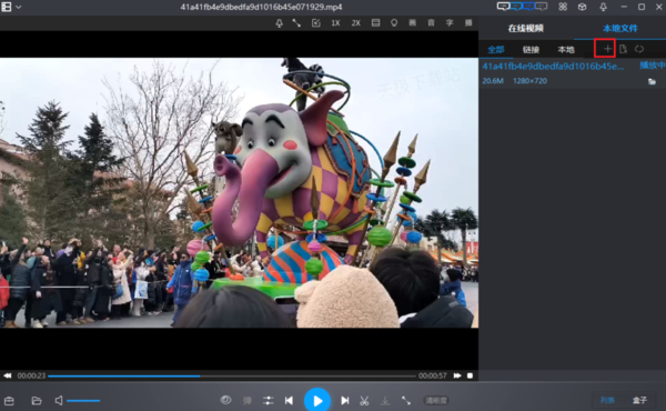 1.打开暴风影音客户端,在右边点击本地文件,然后选择“+”号上传需要播放的视频。
