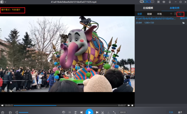 3.或者在右边本地文件下方,点击最右边框住的选项进行播放模式的切换,最左边可以查看切换的模式是什么。
