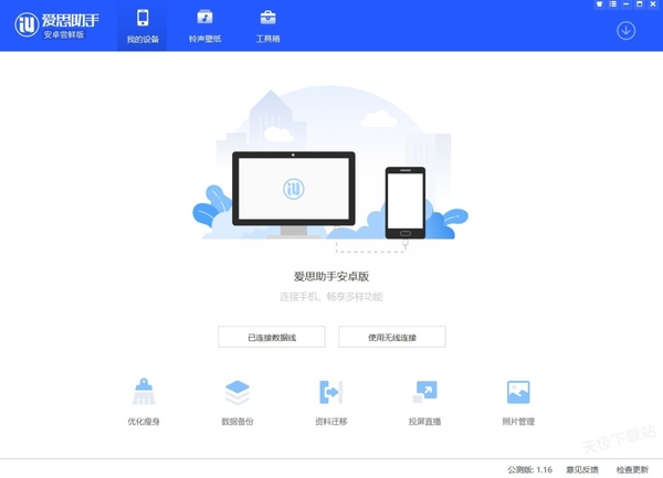 答案是可以的。爱思助手提供了“爱思安卓版”功能,用户可以通过数据线或无线连接方式将自己的安卓手机与电脑连接。一旦连接成功,用户就可以开始享受优化瘦身、数据备份、数据迁移、投屏直播、照片管理等功能。
