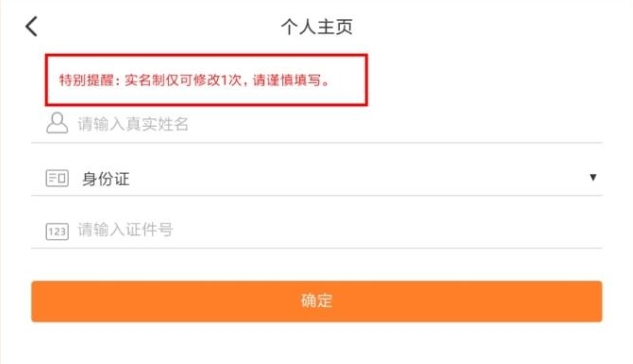 3、根据提示进行实名修改即可。(注:显示修改实名制则有一次修改机会,不显示修改实名制,则为无法修改,实名时请留意登陆的账号是否正确,仅可以修改一次,请务必谨慎填写。)