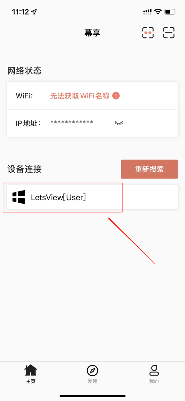 2、打开手机中的幕享,并且保持手机和电脑处于同一无线网络,然后在手机幕享的下方找到对应的接收端名称,然后点击就可以开始投屏了。