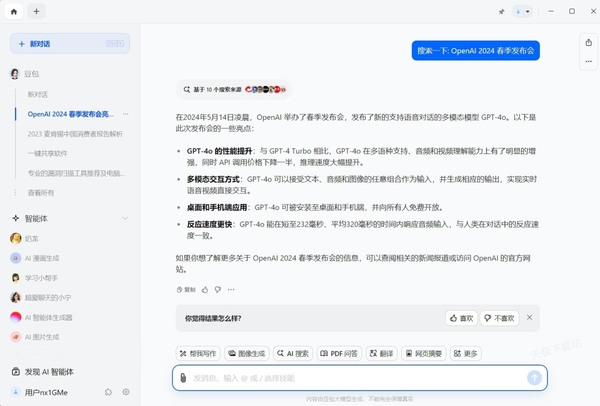 豆包在功能方面更加丰富多样,除了基本的对话功能外,还提供了智能体、PDF问答、网页摘要和图像生成等多种功能。而文心一言则更侧重于对话和交流,功能相对较为单一。