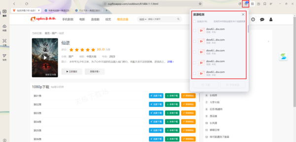 2.如果“资源检测”检测到有视频资源的话,也可以在右上角“资源监测”插件中进行下载。