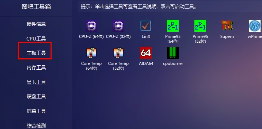 在图吧工具箱的左侧导航栏中,找到并点击“主板工具”选项。