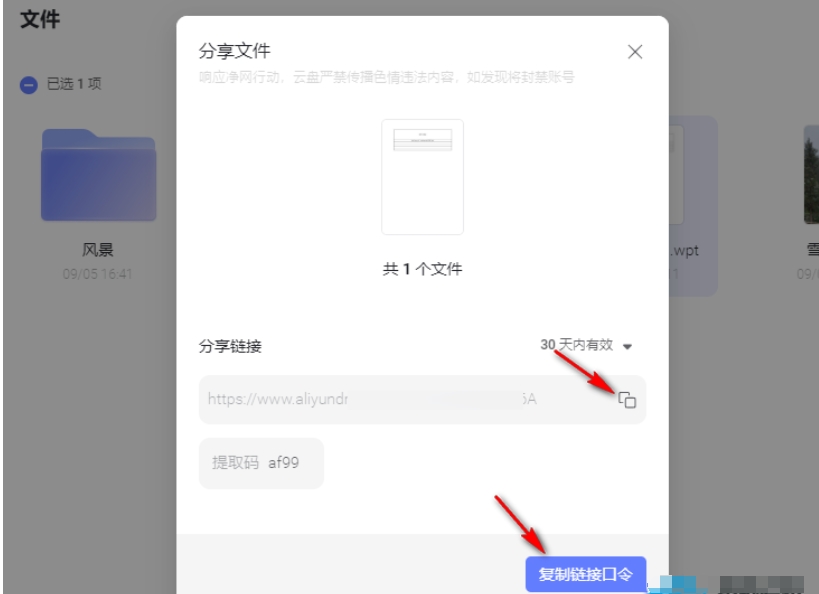3、在生成分享链接后,你可以点击链接右侧的复制图标或点击页面下方的“复制链接口令”选项来复制链接。然后,你可以通过聊天软件、邮件或其他方式将链接分享给你的好友。