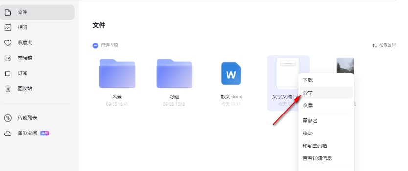 1、打开阿里云盘软件,找到你想要分享的文件或文件夹,点击“分享”选项。
