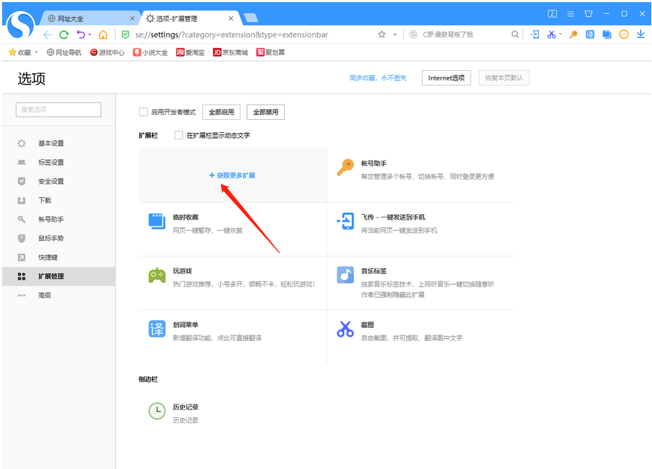 2.进入到页面之后,在该页面点击【获取更多扩展】按钮进入到页面中。