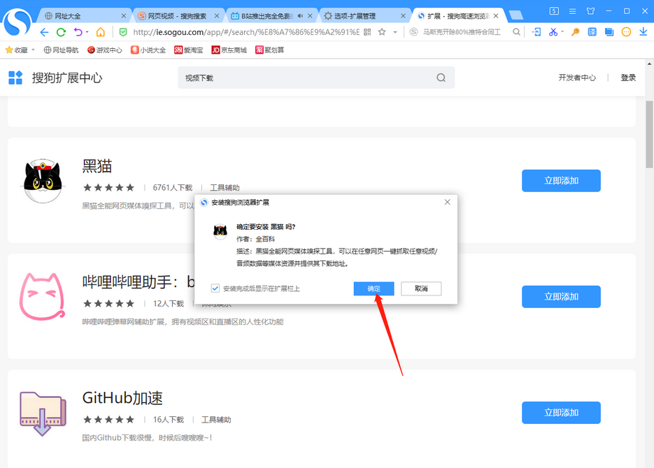 4.接着就会弹出一个是否确定添加插件的窗口,点击【确定】按钮。