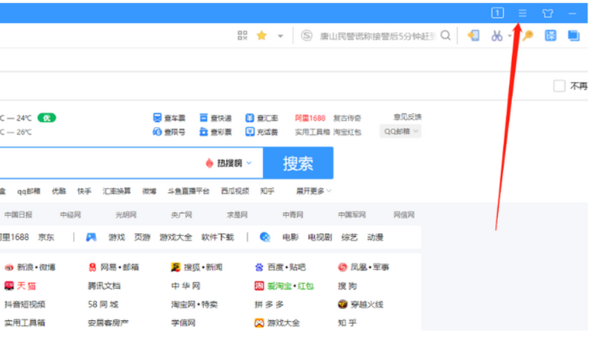 2、点击界面右上角的“三条杠”,进入功能设置页面。搜狗浏览器怎么清除缓存