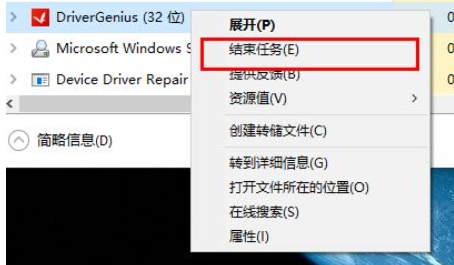 2、找到“DriverGenius”并选择“结束任务”。