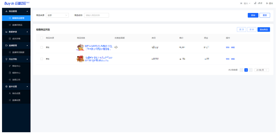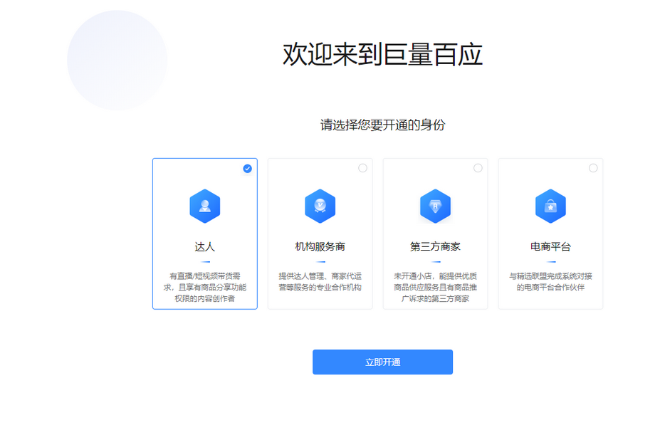 2. 点击直播伴侣中“商品管理”图标或浏览器直接搜索“巨量百应”平台网页,选择抖音登录(必须与直播伴侣登陆相同账号),并切换到“达人”角色。