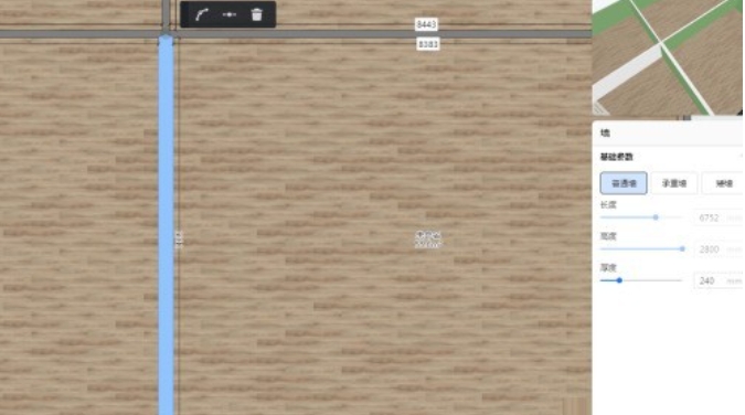 1、首先,在酷家乐的户型工具中,选择你想要挖洞的那面墙体。