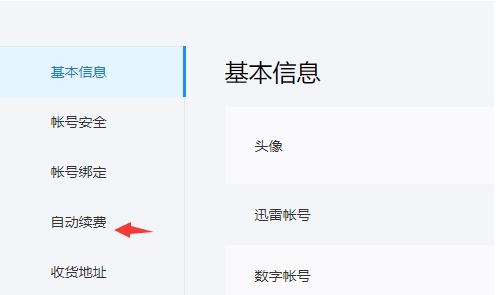 在账号管理页面中,您会看到“自动续费”的选项,点击它。