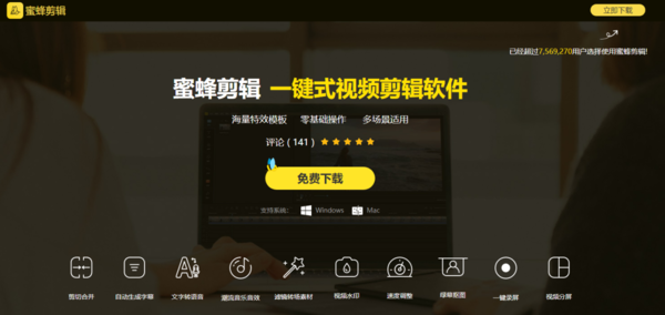 3、蜜蜂剪辑。更加注重简洁与实用的视频剪辑软件,倡导“全民皆可剪”,即使是电脑小白,也可以用蜜蜂剪辑轻松剪辑作品;此外,我们还能在蜜蜂剪辑中体验绿幕抠图等新奇功能。