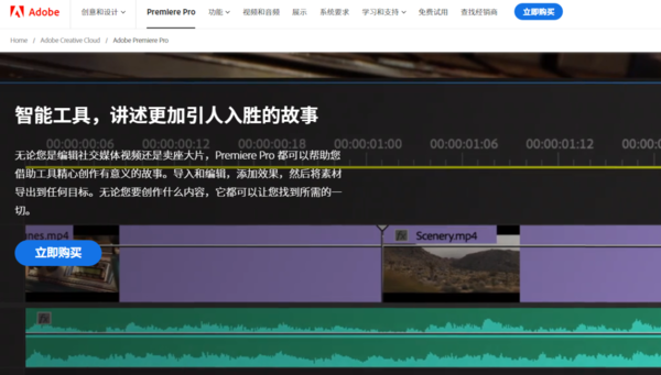 2、Premiere(Pr)。如果大家需要一款非常专业的电脑视频剪辑软件,那Pr一定是你的首选,里面多种功能和特效,足以支持你做出“电影级”的视频作品。