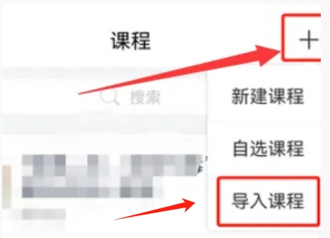 2、然后点击右上角的“+”图标,点击“导入课程”即可。