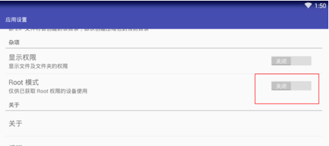 3、打开管理器后,点击应用设置,找到Root选项,将关闭的Root模式打开就行了。