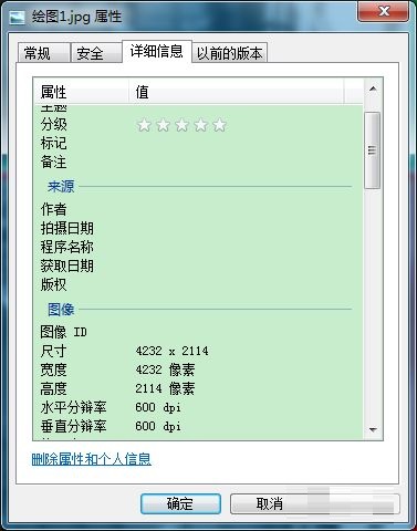 第五步:打开图片,右击“属性”,可以看到详细信息里面显示了图片的水平和垂直分辨率均为 600dpi(如图所示)。