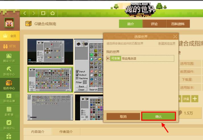 将mod下载,点击安装。点击安装时,系统会列出的世界列表,注意这些都是和mod相匹配的世界版本。
