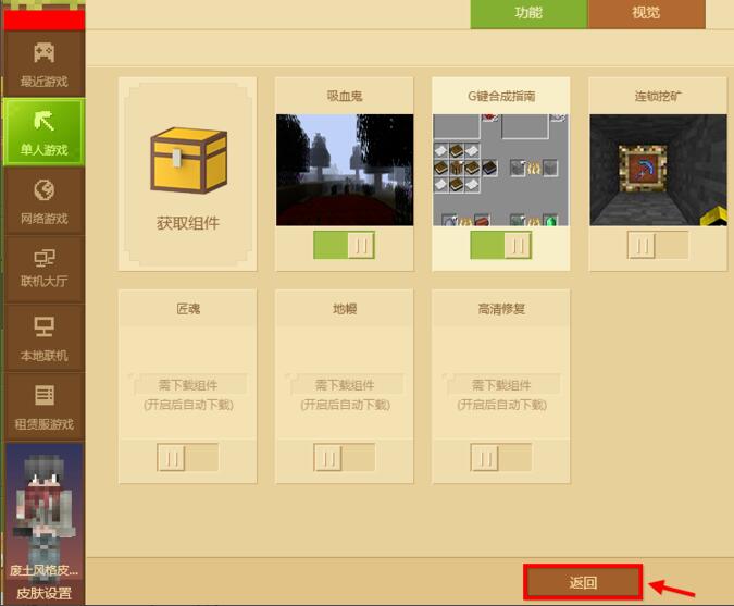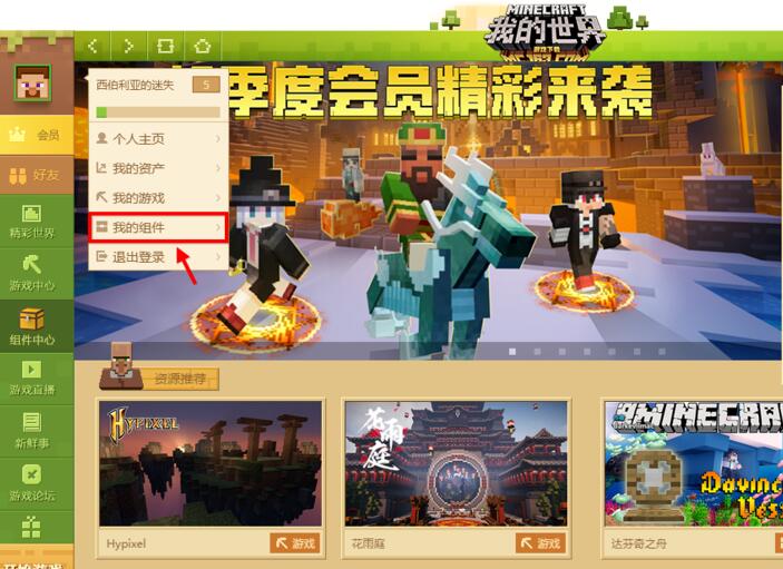 在游戏主界面,点击左上角头像,选择“我的组件”,可查看自己下载的所有组件。