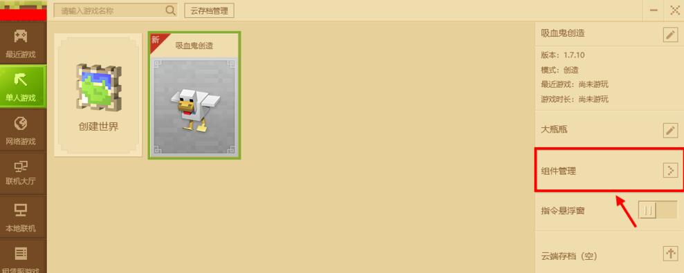对于那些下载过的mod,可在世界列表中选择任意世界,点击右侧“组件管理”,将mod开关开启,然后进入游戏即可。