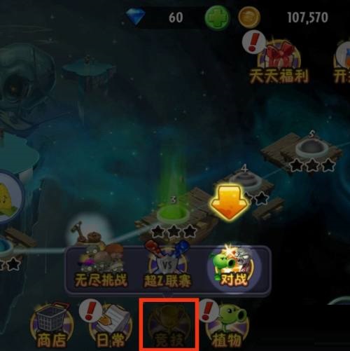 第一步:首先我们打开植物大战僵尸APP,选择竞技,点击对战按键(如图所示)。