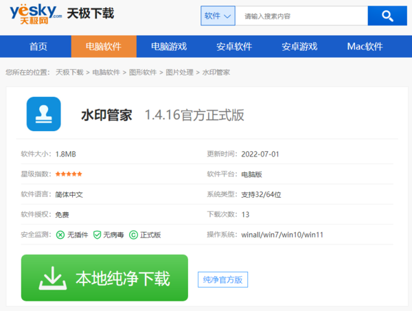 为了方便大家下载水印管家,这里给大家附上【财神爷站】站点的【下载链接】。