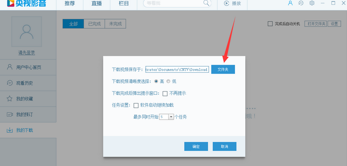 4、点击“打开文件夹”会直接进入到央视影音(CBOX)下载视频的保存文件夹中,点击“设置”可以修改央视影音下载视频的保存位置。