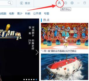 1、打开央视影音,在其右上角的位置打开“用户中心”;