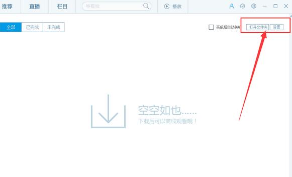 3、再在“我的下载”界面右上角找到“打开文件夹”和“设置”两个按钮;