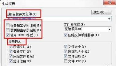 随后,在【生成报告】对话框中,根据自己的实际需要进行选择。一是生成的文件保存的位置,二是生成的文件格式,三是生成的文件内容。这些都可以根据自己的实际需要进行选择