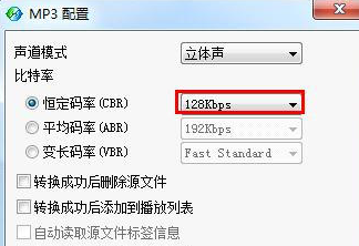 将比特率中的恒定码率改成较小的值,推荐128Kbps。
