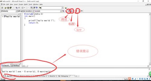 第五步:点击调试按钮,看看有没有报错,如果没错,依次点击build和运行(就是那个感叹号)(如图所示)。